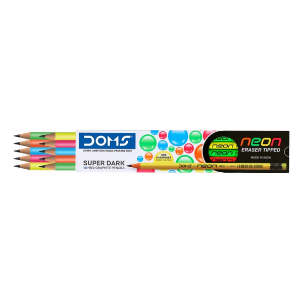 Doms Neon Eraser Tipped HB/2 Super Dark Graphite Pencils Pack of 10