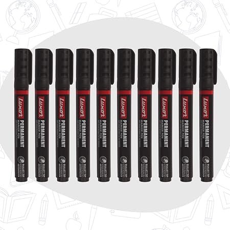 Luxor Refillable Permanent Marker in Classic Black, Pack of 10, Perfect for Sustainable and Bold Writing