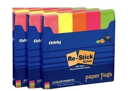 ODDY NEON Sticky Notes, Paper Flags 15 X 76 mm Multicolour Sticky Notes (Pack of 3, 250 Sheets per pad)